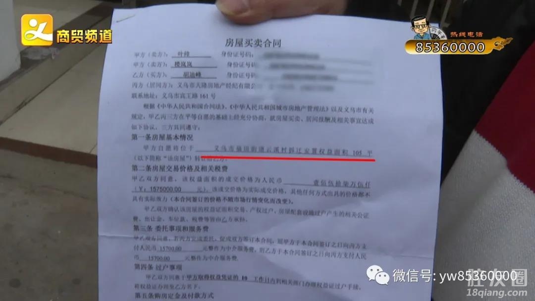 在义乌做生意的小童,2019年12月,通过中介向叶帅买了105个平方的权益面积,交了80万定金