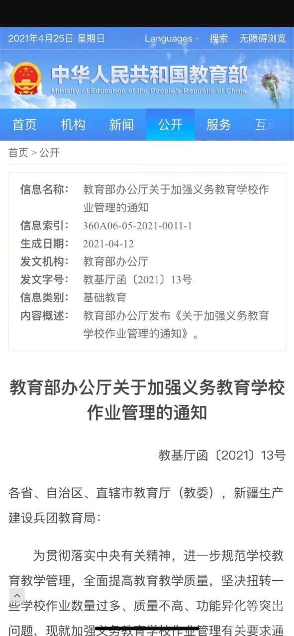 [随便说说]#教育部严禁中小学给家长布置作业# [复制链接]