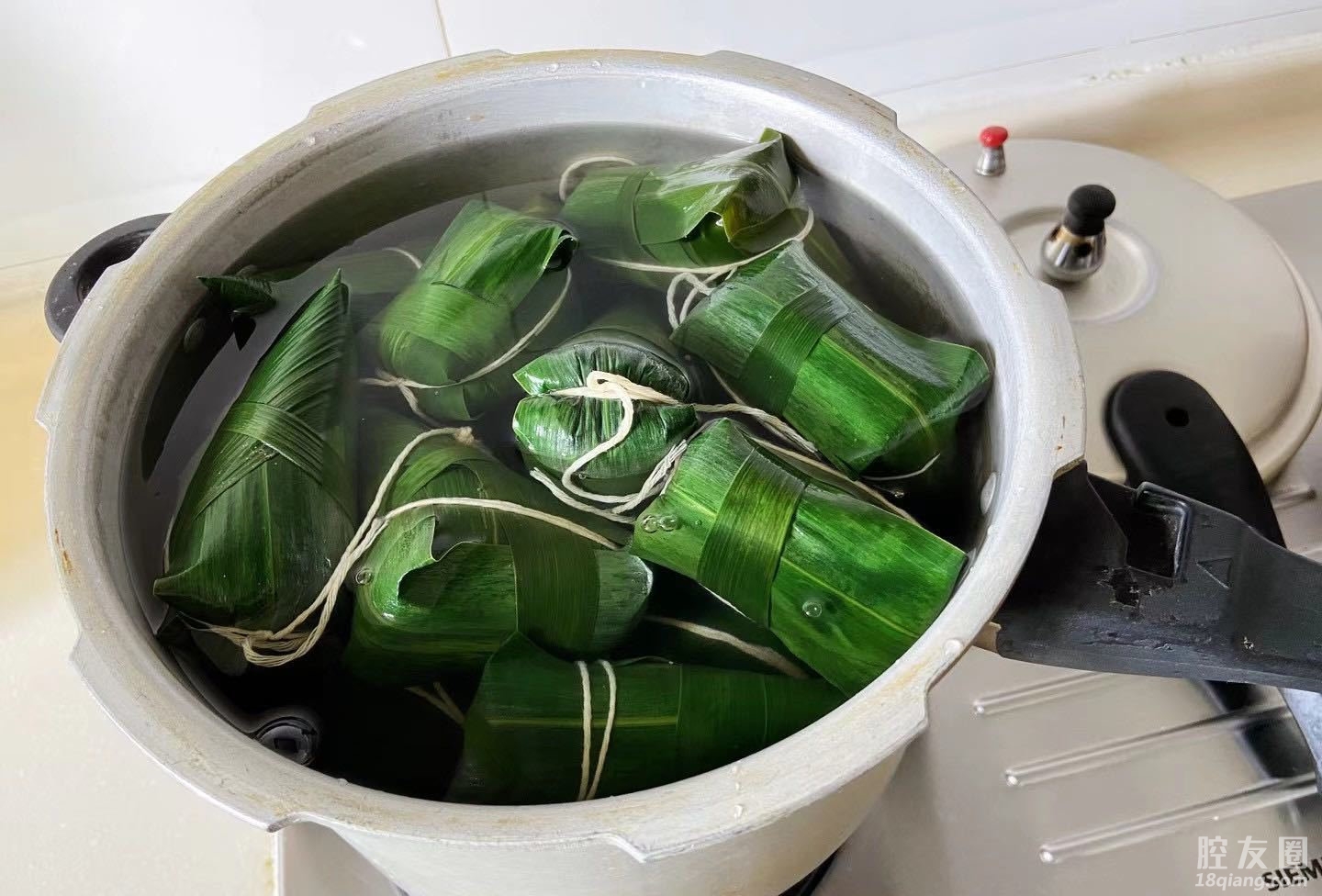 我家的高压锅只能放20个左右的粽子,所以每次包粽子都产量不多。如果在乡下的土灶上煮的话,一锅可以煮很多。