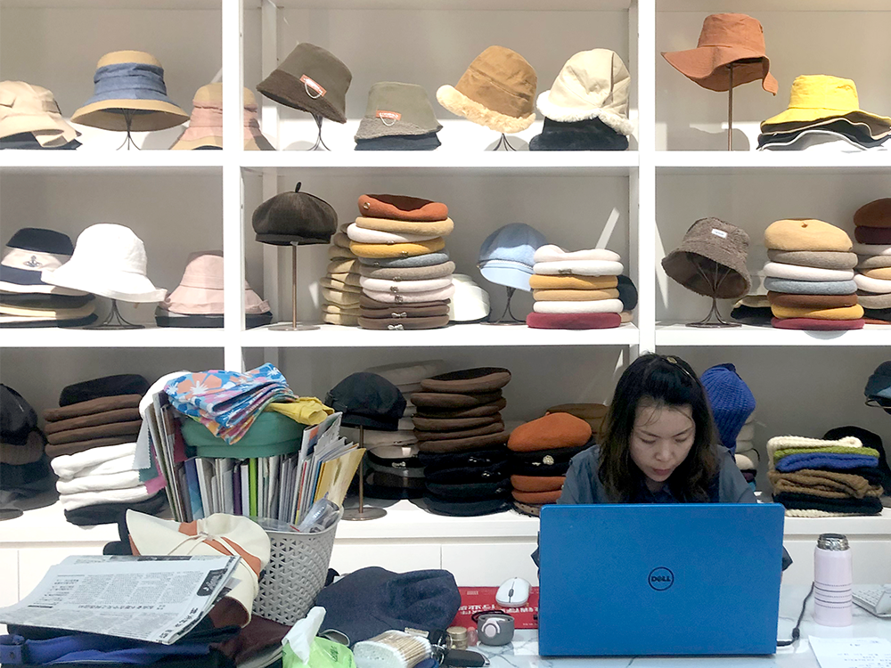 15年底,夫妻俩到韩国、日本、泰国、越南等国家考察,发现国内的帽子在手感、质量、设计等方面,都与其有很大差距。