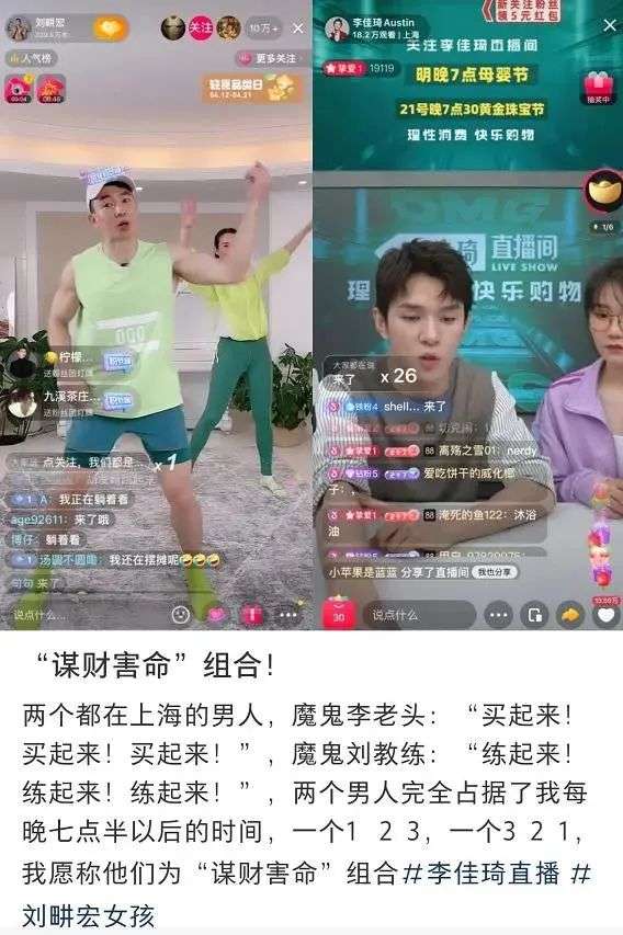 最近爆火的健身博主刘畊宏,短短20几天,涨粉5000万,创造了抖音最快涨粉记录,一跃成为新晋顶流。和带货主播李佳琦一起,被网友称为“谋财害命”组合,热度居高不下。