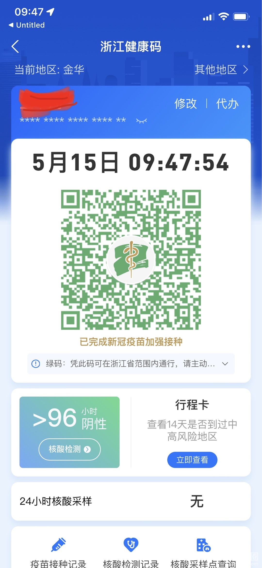 一键打开行程卡