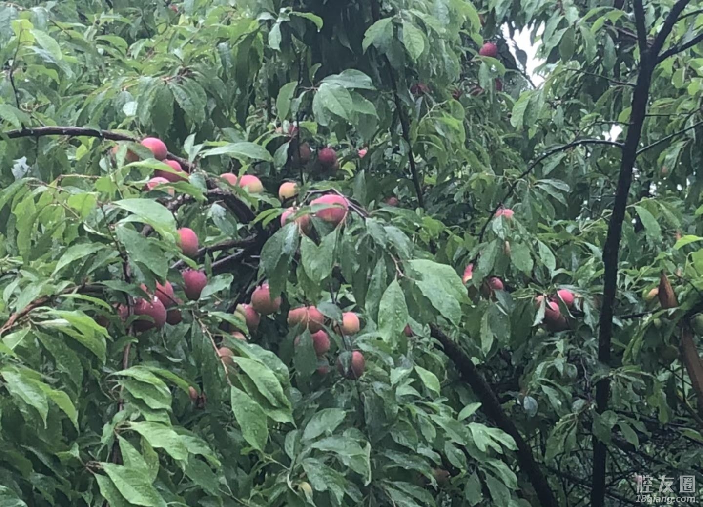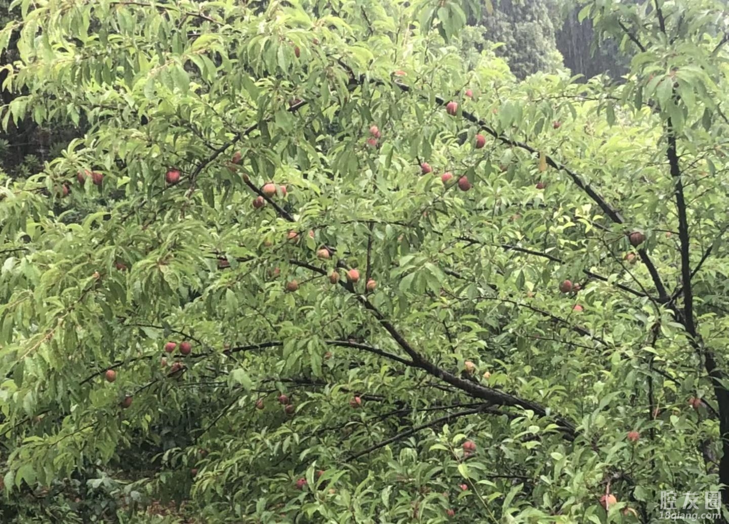 天下着雨,坐在家里闲着无聊,上山去摘桃。