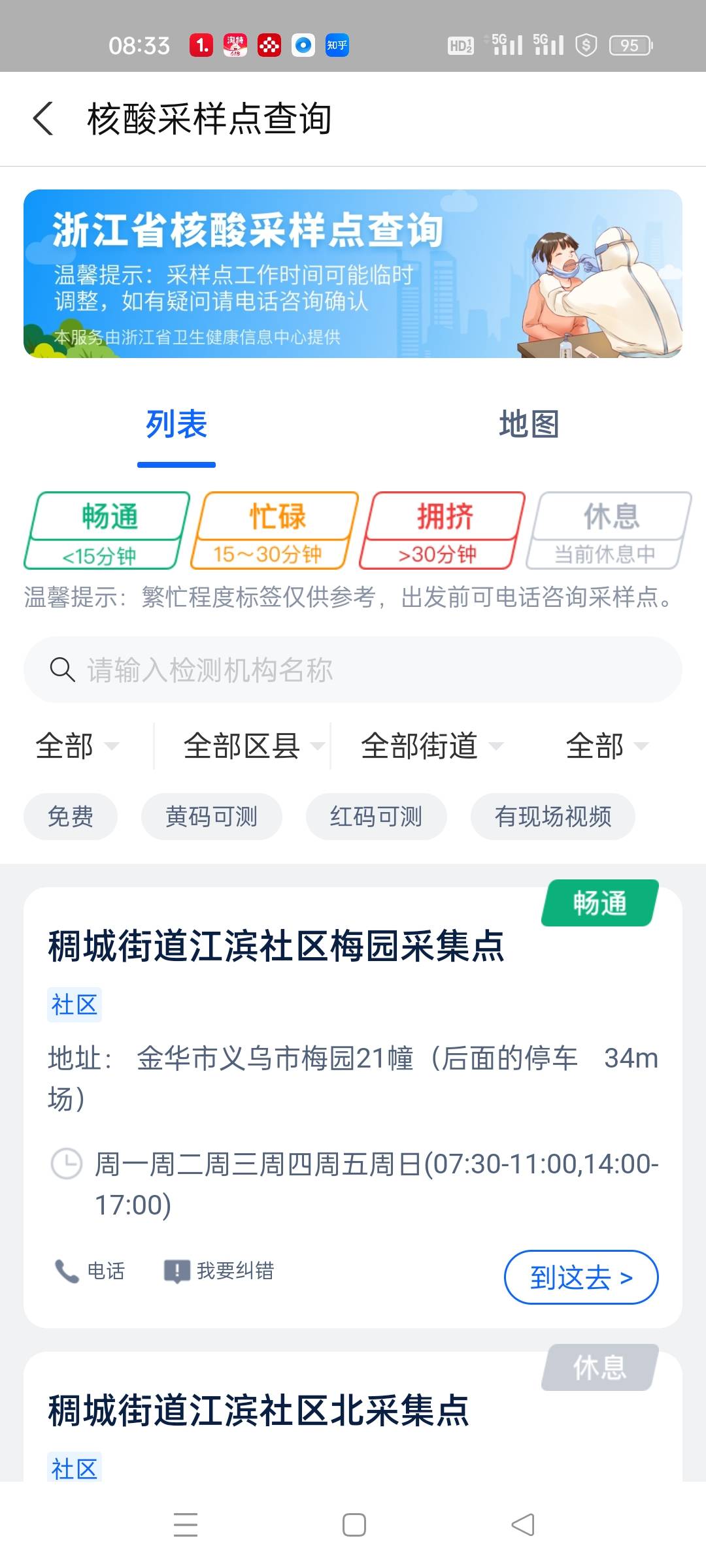 梅园核酸检测点很忙的时候显示畅通,很空的时候又说忙