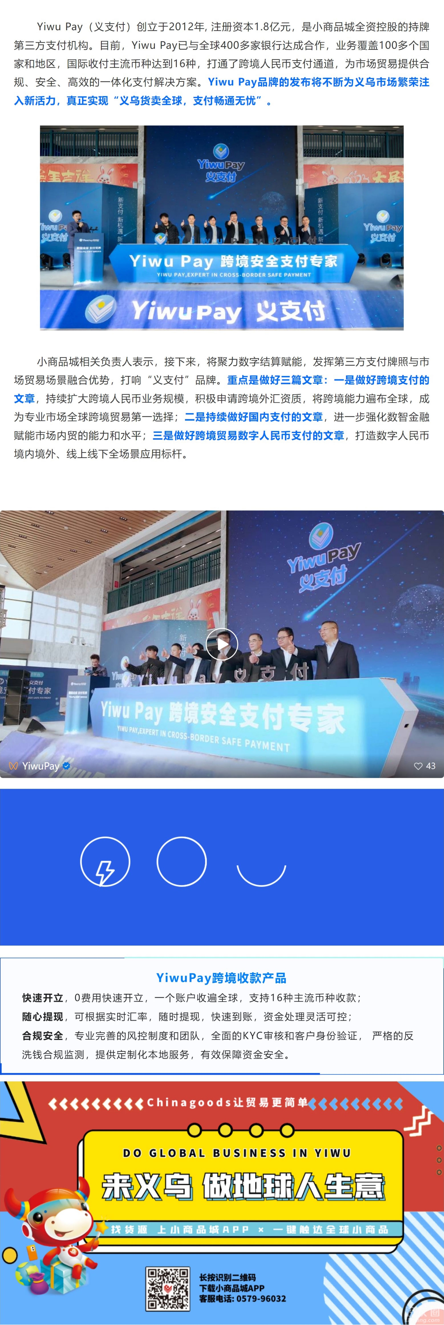[义乌故事]Yiwu Pay义支付正式发布,助力义乌货卖全球,支付畅通无忧 [复制链接]