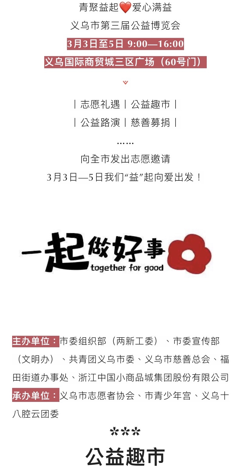 [义乌故事]连续三天!公益趣市、音乐路演、志愿礼遇,慈善募捐,义乌人这周又有地方逛了! [复制链接]