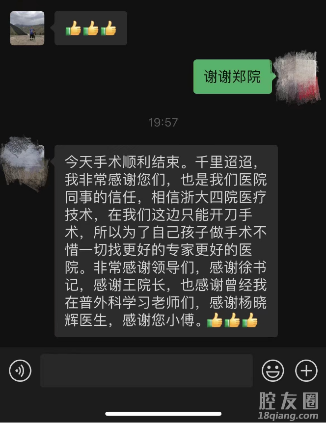 得知手术顺利完成,当地医院郑院长发来感谢短信