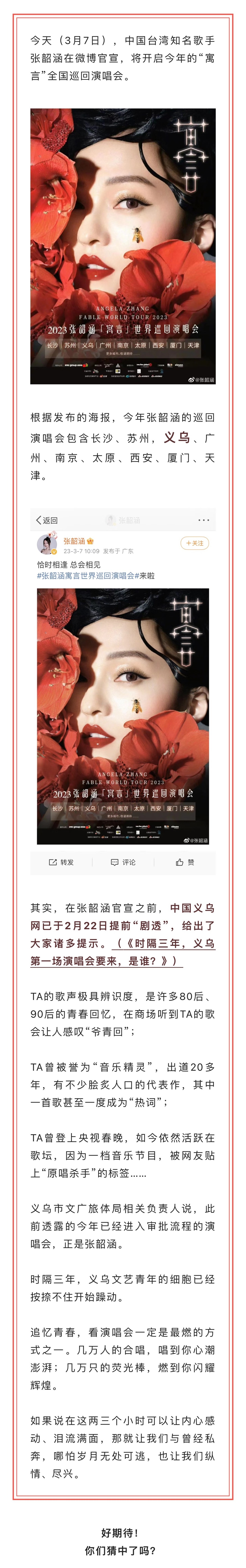 是她,真的要来义乌开演唱会了!本人官宣,你们猜对了吗?