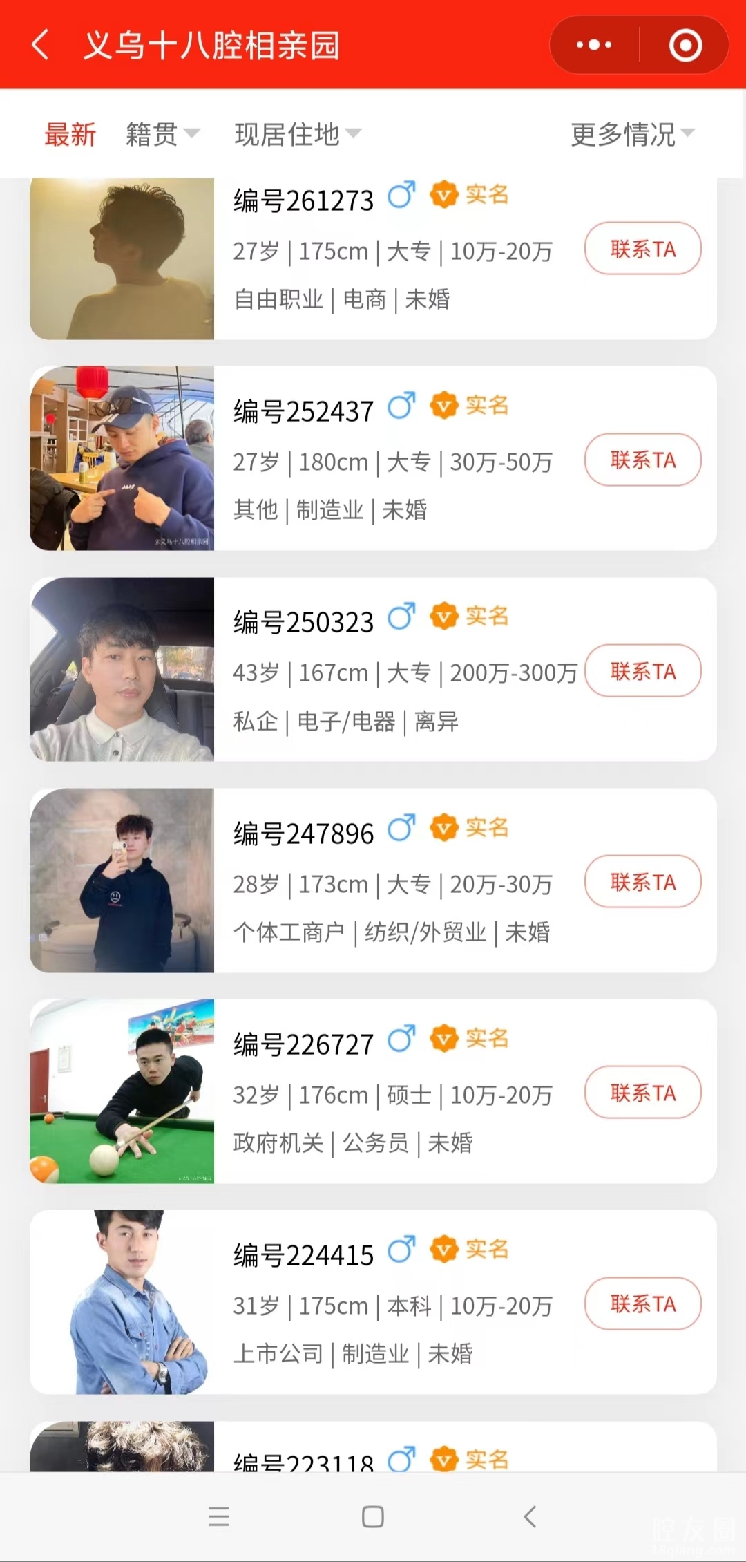 这里大部分都是义乌本地人,或者在义乌谋生的外地人 漂亮的小姐姐,帅气的小哥哥很多狠多,天天都有新人来注册。