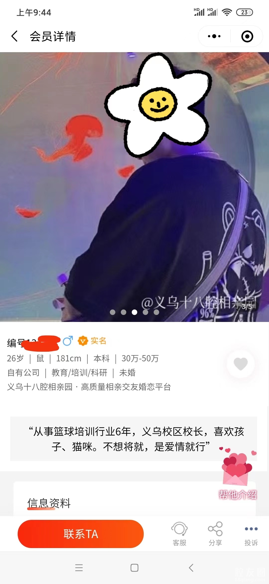 如果你看着感觉还不错,想联系对方,点击(联系TA)