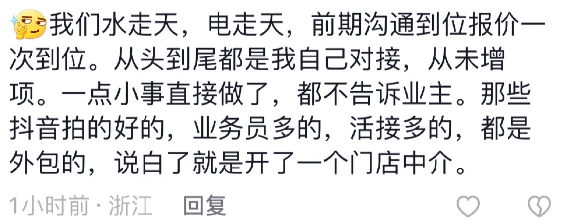 装修处处坑,踩不完的坑。我们细数一下当下流行的坑。业主群坑:这坑大部分人都知道,出现好几年了,当然还有好多小白为其买单,做功课的人都知道,总之,无利不起早,天上不掉馅饼,一分钱一分货。抖音坑之装修博主坑:通用套路,制造焦虑吸粉,夸大坑,让你们焦虑,人家专业做装修的,还没有这些大忽悠专业?总结,没事少看,庸人自扰,自找不痛快。当地抖音拍视频说装修:会说的不一定是专业的,不会说的可能真的专业。会说的专业研究抖音,接的活外包,人家赚快钱,只研究抖音,无心关注工地,或者说多的没办法去完成那个工地。小区里搞套路接活坑:特点是价格便宜,突破常理,也不知道哪里冒出来的,好几个小区出现卷款跑路现象,都是百万级别。认真做装修的老板,都是从头对接到装修结束,凡事一清二楚,工地一把抓,不外包,老板好沟通,不容易出现扯皮,毕竟这类老板大部分是想干口碑(当然老板没本事例外)。那么这类老板哪里找?只有一个途径,老客户介绍,网上口碑,别的真的不好遇见,毕竟人家每天专注工地并不会去交付现场拉活。