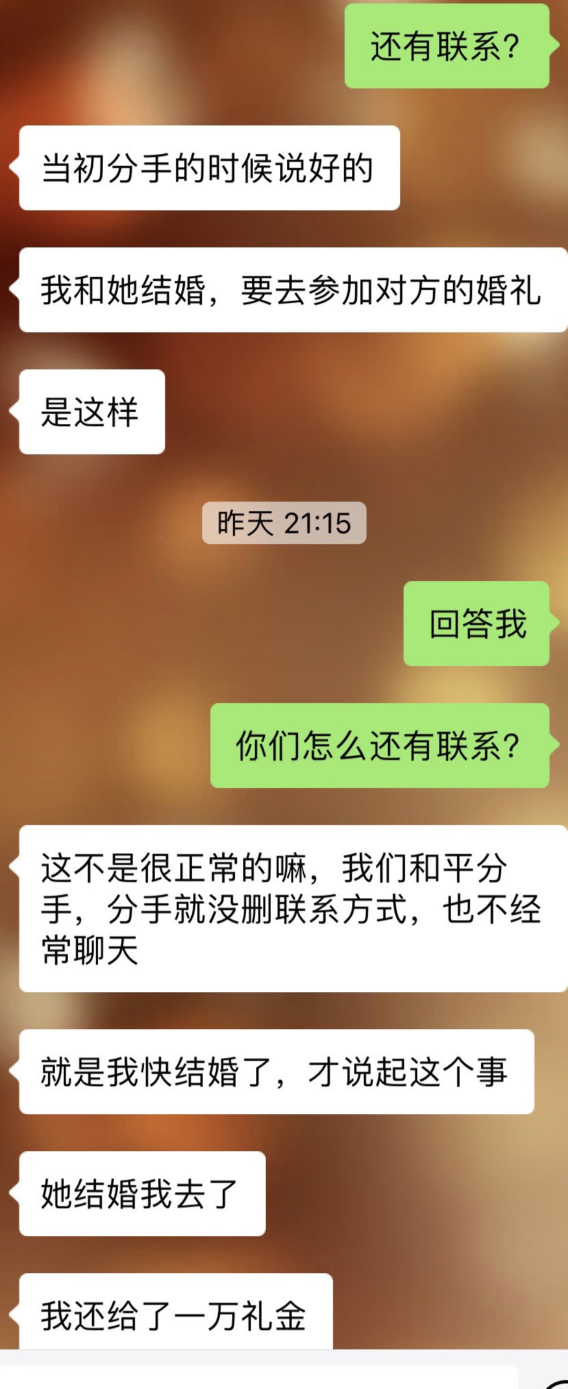 他问我他前女友能不能来参加他的婚礼,他们当初分手的时候约定好了,对方结婚一定要去参加,他前女友结婚他去了,他前女友老公知道并表示不介意,他给他前女友送了一万的礼金