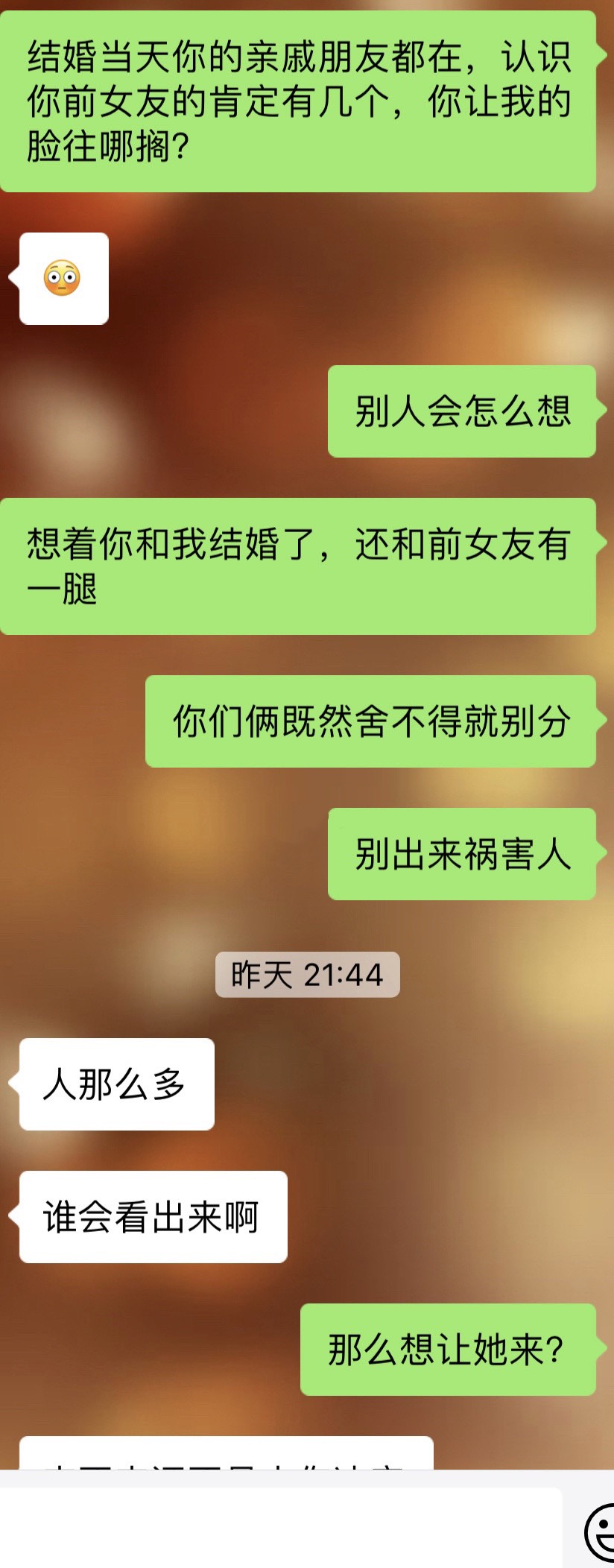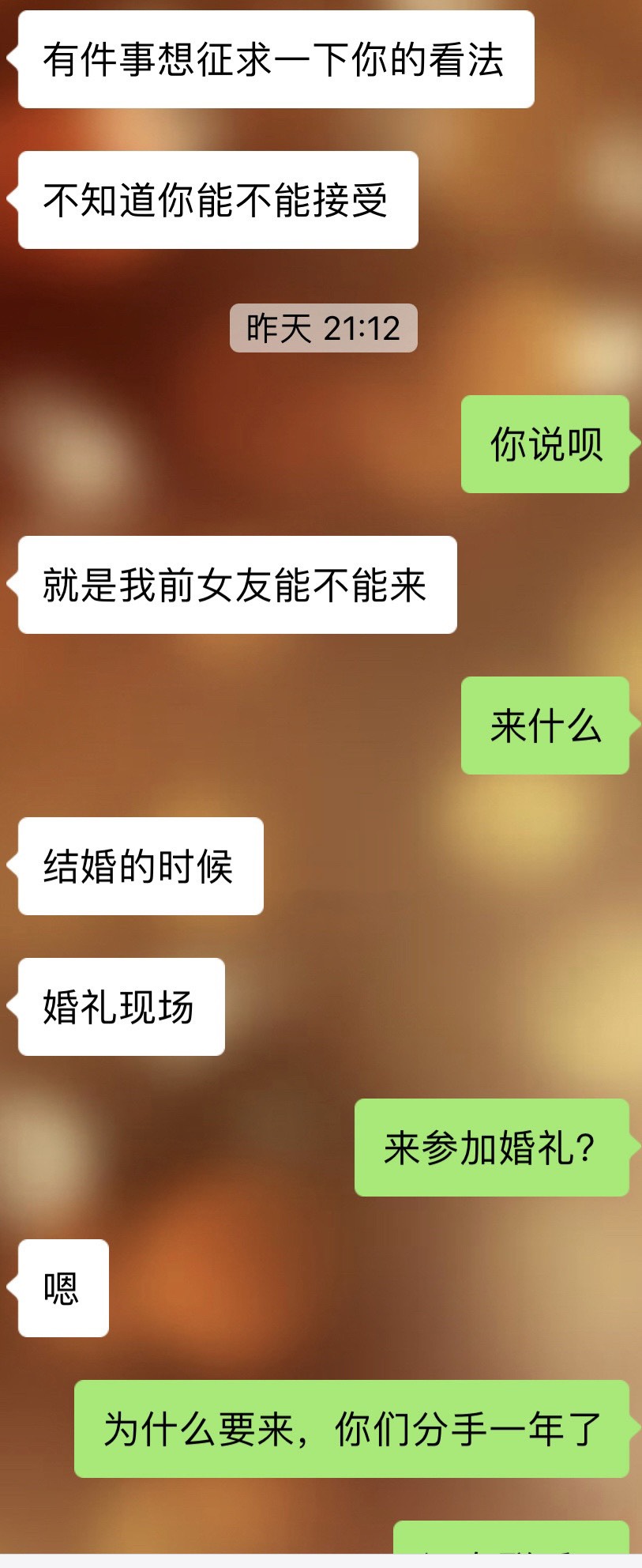 准备国庆节结婚,老公问我能不能让他前任来参加婚礼,这是要娶我还是娶她! [复制链接]