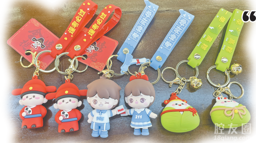 升学季推出的“金榜题名”“考神附体”“一举高粽”系列钥匙扣。