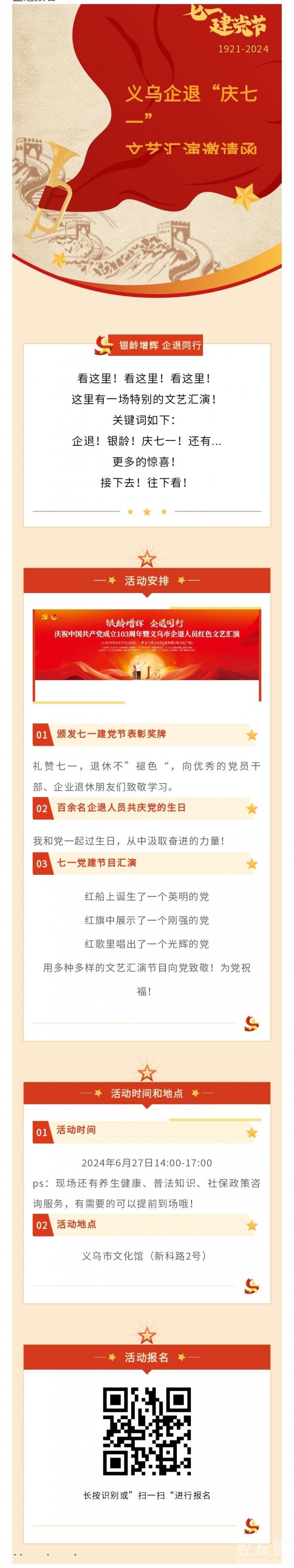 [义乌故事]邀请函 | 义乌企退“庆七一”文艺汇演邀您来观看 [复制链接]