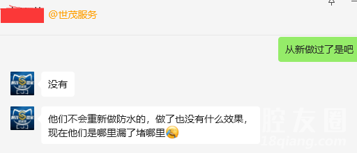 给物业重新反馈后,得到的答复是哪里漏堵那里,不会重新做防水,屋顶上面现在去不了,当时拍的照片没了