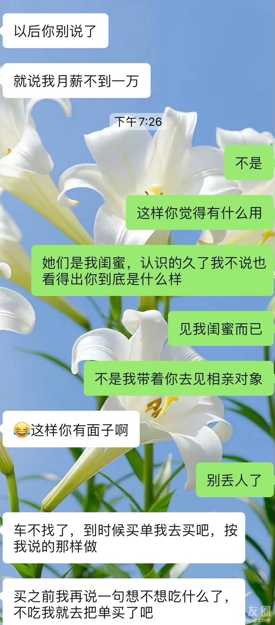 [义乌故事]准备带男友见闺蜜,他提出吃饭他买单,回去后我把钱转给他,这是不是太下头了? [复制链接]