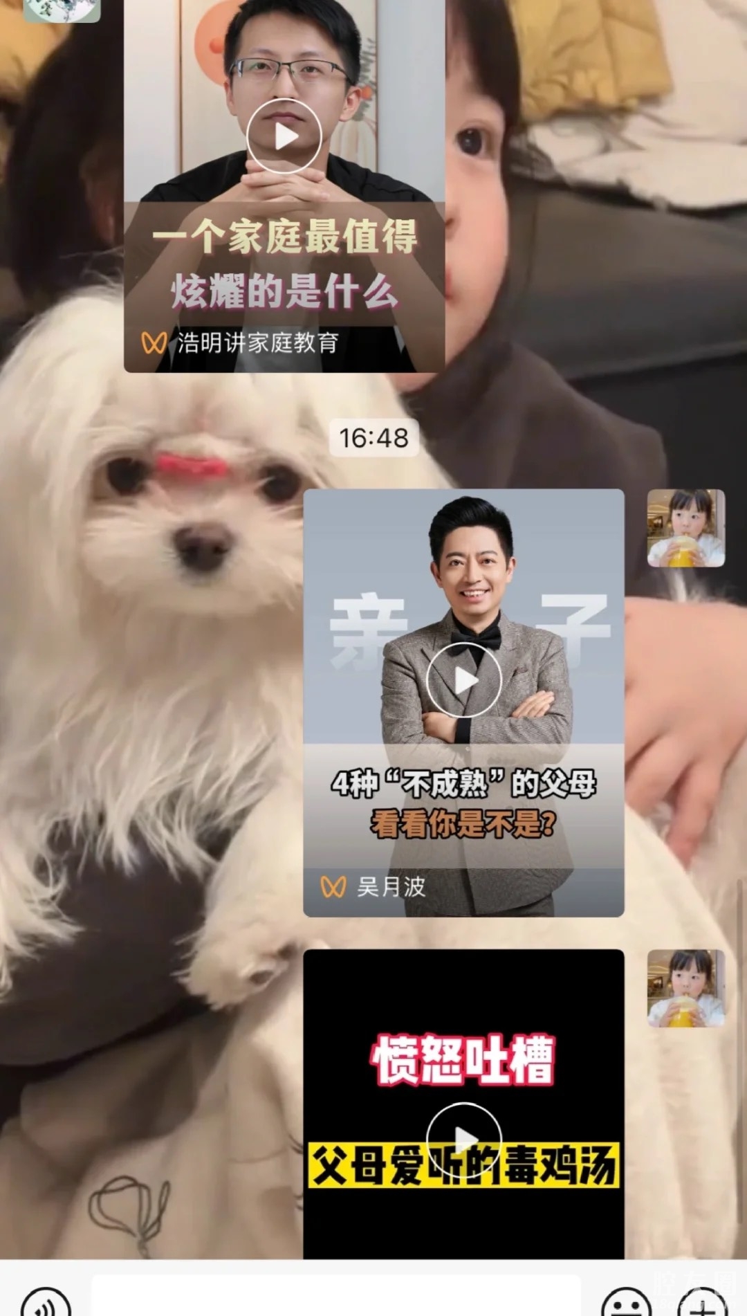 我妈天天在vx视频号和上分享给我营销号一些所谓“专家”乱说的视频,越发越离谱,都说到一个家庭最值得炫耀的不是车子房子,而是有一个优秀的孩子,我真受不了了,赶紧找了几个视频回过去。(但是有些小知识分享的确实也有用,但是这种视频很好)平常跟我妈聊天说的事情是一点也信啊,还一个劲的否定反驳我,营销号说的话是逐字分析,深信不疑的,网上说什么信什么,这网上的毒鸡汤也太毒了你们的父母也这样吗?