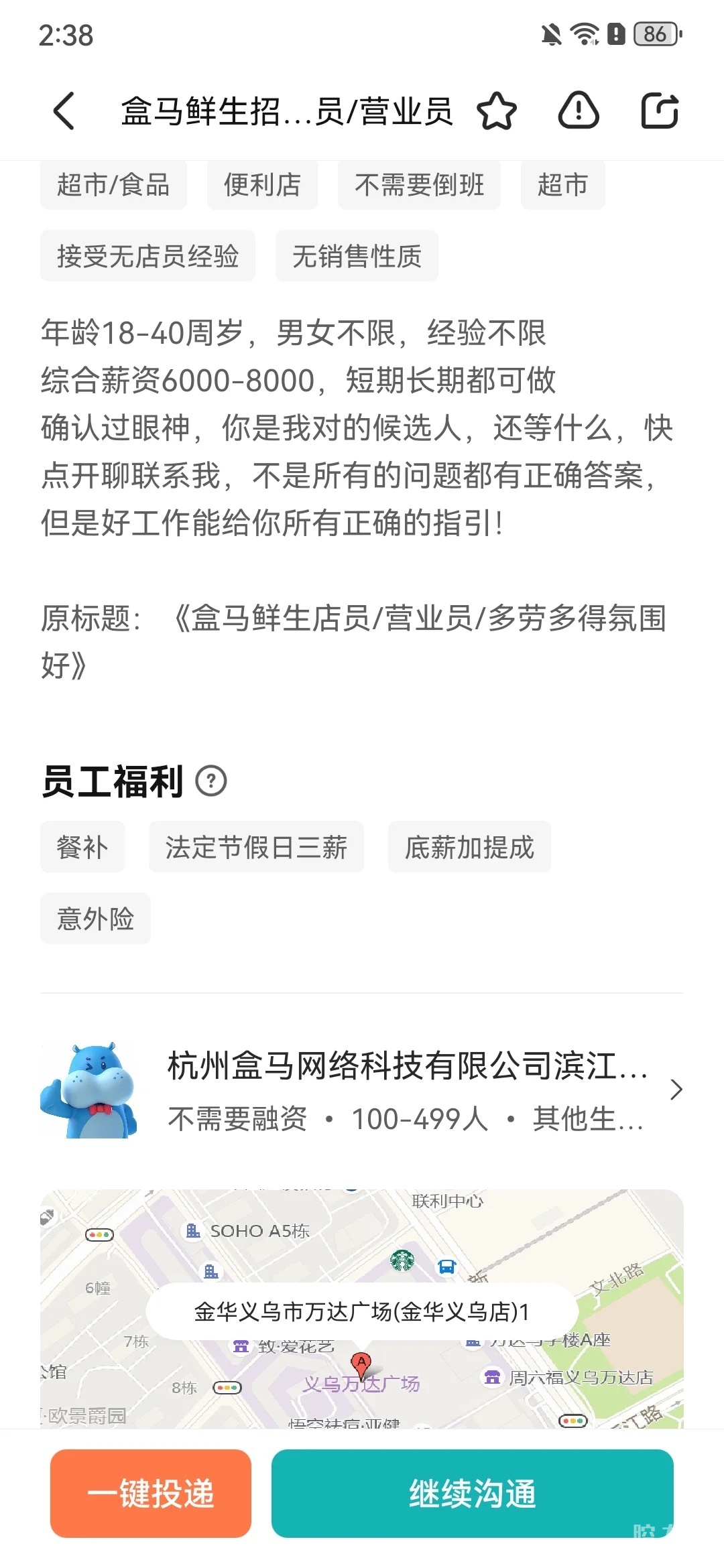 招人的信息上写着工作地点在万达