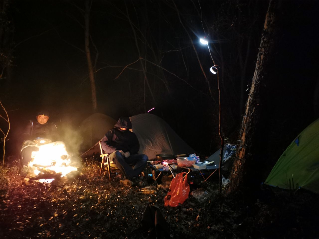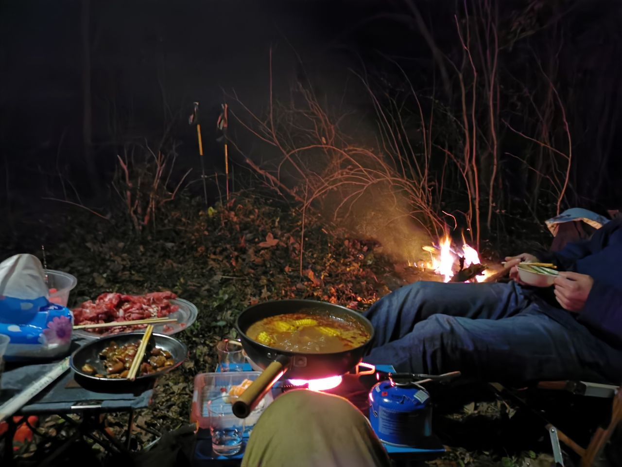 夜晚,酒足饭饱后的我们舍不得如此可惜地进入帐篷里入睡,宁愿强撑着睡意也要互相间聊天喝茶,等着火堆燃尽,说说去年彼此间的生活状态,也畅想下今年的户外生活,熬太或者苍山八峰,其实我是比较怕累了,更喜欢周边的小山慢走。
