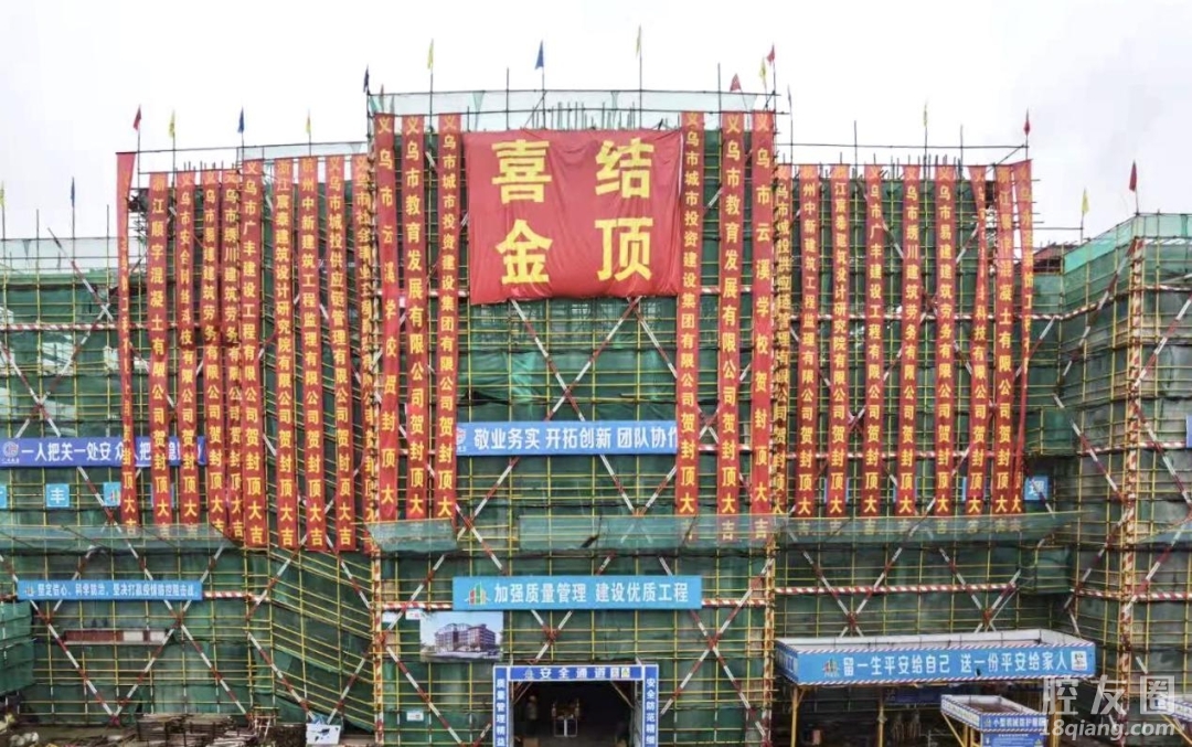 近日,义乌市云溪学校扩建工程项目完成主体结顶并顺利通过主体验收。