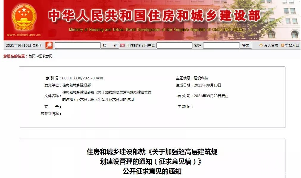 9月10日,住房和城乡建设部就《关于加强超高层建筑规划建设管理的通知(征求意见稿)》公开征求意见。