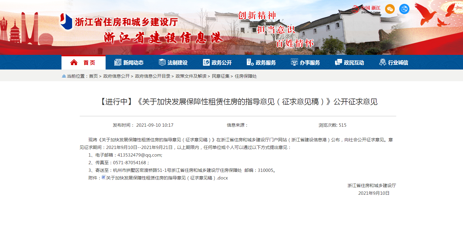 9月10日,浙江省住房和城乡建设厅网站公布《关于加快发展保障性租赁住房的指导意见(征求意见稿)》(下称“指导意见”),并向社会公开征求意见。此次意见征求期间为2021年9月10日--2021年9月21日。