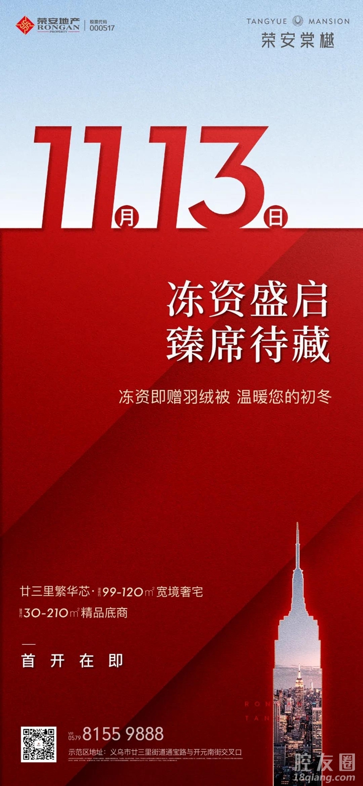 据悉,荣安棠樾将于11月13日启动冻资,针对此次冻资客户棠樾可谓是给足了诚意,享受住宅房价优惠1%,商铺房价优惠3%,车位总价优惠10000元安家义乌,棠樾首开红利不容错过!
