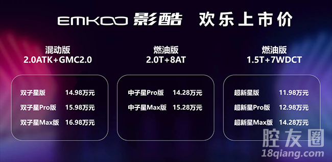 10月23日影酷上市发布会——金华站,影酷正式宣布上市。新车共推出三种动力选择,共8款配置车型,官方售价11.98万元-16.98万元。作为一款专为年轻用户打造的科技座驾,影酷既能耍帅、能劈弯、炫科技,还兼顾大空间、超安全、超省油的优势,为既渴望个性表达、又重视照顾家人的酷青年,带来了酷玩又顾家的全新选择!这,很影酷!很酷的六重礼来袭,直接治愈选车困难症作为SUV卷王,影酷推出了六重好礼,包括酷“享”无忧礼、酷“跑”流量礼、酷“潮”购车礼、酷“燃”置换礼、酷“赢”补贴礼、酷“爱”金融礼,助力年轻用户轻松拿下这款“梦中情车”,开启“这,很影酷”的全新出行生活。横霸粉丝榜、全网粉丝量超3000万的博主“猫一杯”,也在现场感叹,影酷远超消费者心理预期的综合价值不仅直接治愈了选车困难症,更让它有着上市即爆款的潜力!酷玩因子无处不在,让你轻松Carry全场影酷凭借能耍帅的造型、能劈弯的动控以及炫科技,直接拉满“酷玩”属性,让杨笠、吴星辰等脱口秀演员们纷纷化身影酷种草机,金句频出,轻松Carry全场!这,很影酷!