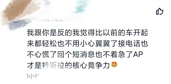 就像这位网友很享受特斯拉的AP功能👇