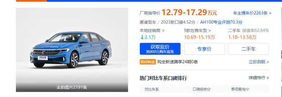 那么汽车届对于级别差之间的价差定位是多少呢?选取速腾(1.4TSI)迈腾(280TSI)的最低配对比,有3-4w的级别价差。