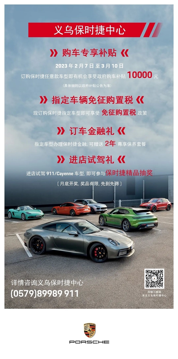 【重磅福利】到店购保时捷享 10000 元政府补贴金!