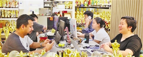 外销占七成左右的义乌市金尊文体用品有限公司,今年前4月销量同比增长超10%。这段时间,有很多合作多年的亚洲老客户陆续来店里看货下单。“‘五一’前就有客户打来电话,让我不要出去玩,留在义乌等他们来补货。”这两天,公司负责人陈显春每天差不多要接待3拨以上外商,还有一些大客户预约要来。